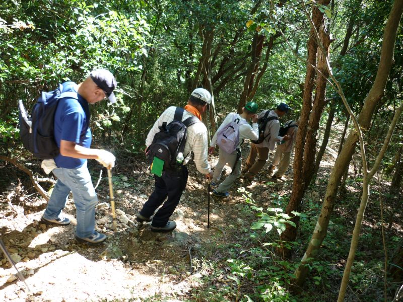 整備された山道を歩きますが、一部に岩場もあります。